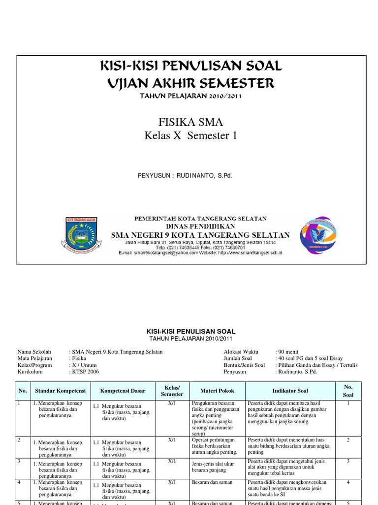 2010 2011 Fisika X Kisi Kisi Uas 1