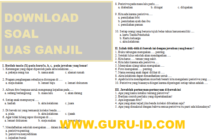 Contoh Soal Kelas 1 Kurikulum 2013 Revisi 2017 Dan Kunci