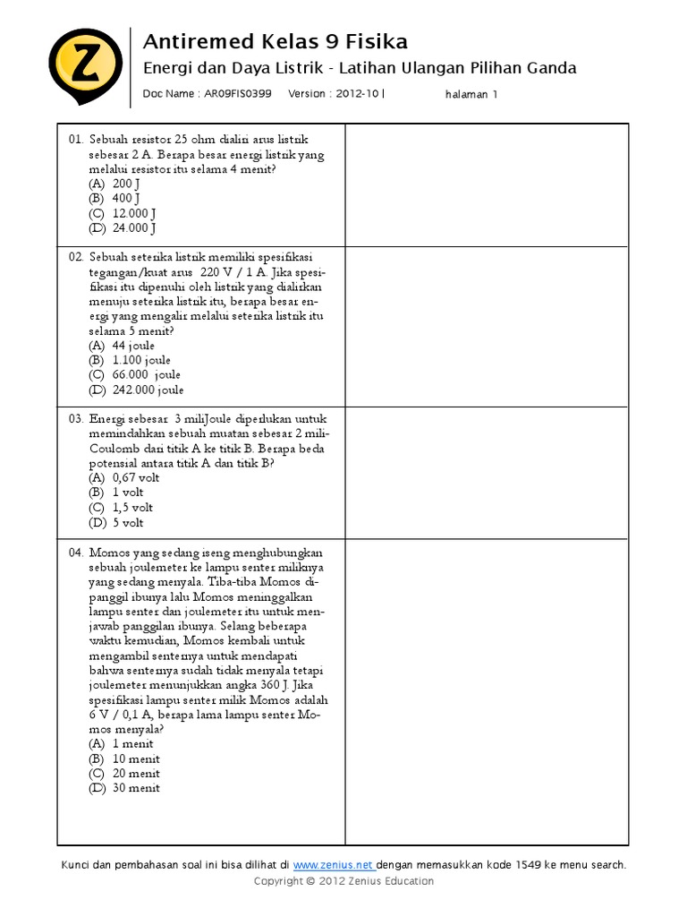 Download Soal Energi Dan Daya Listrik Kelas Ix Smp Nilai