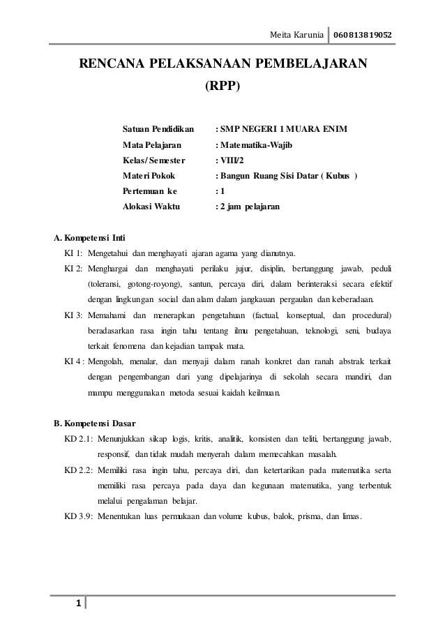 Berikut detail informasi tentang Rpp Bangun Ruang Sisi Datar Smp Kelas 8 Kurikulum 2013.