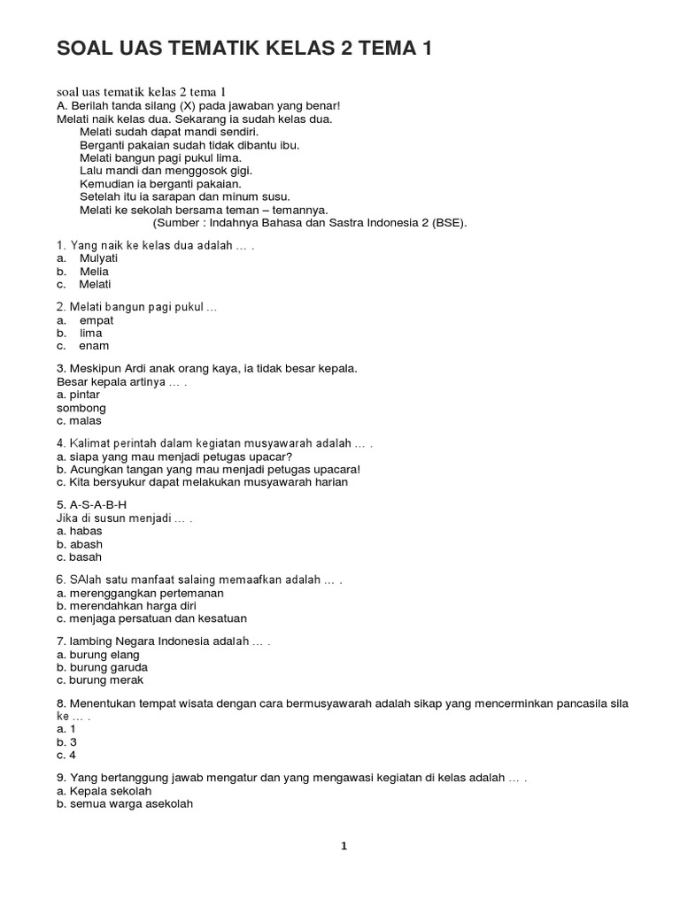 Soal Kelas 2 Sd Tema 1 Hidup Rukun Semester 1