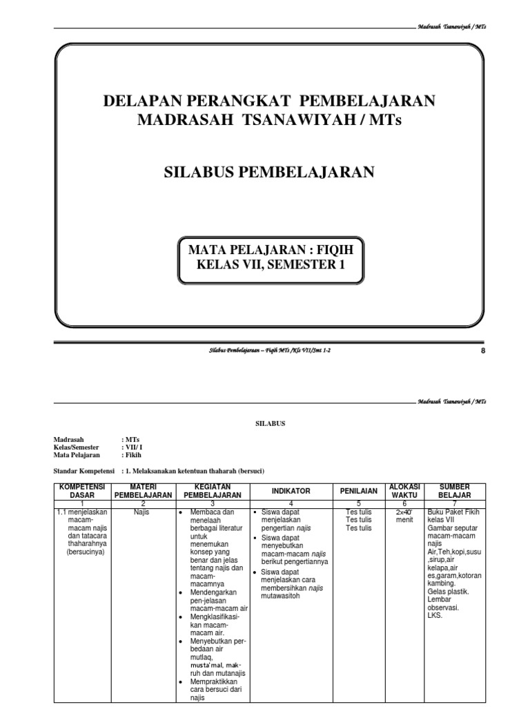 1 Silabus Fiqih Kelas Vii Mts Semester 1 2