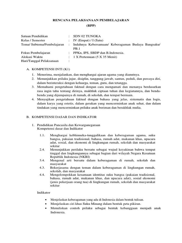Rpp Tematik Sd Kelas 4 Tema 1 Sub Tema 1 Pembelajaran 2 Kurikulum 2013 Revisi Terbaru