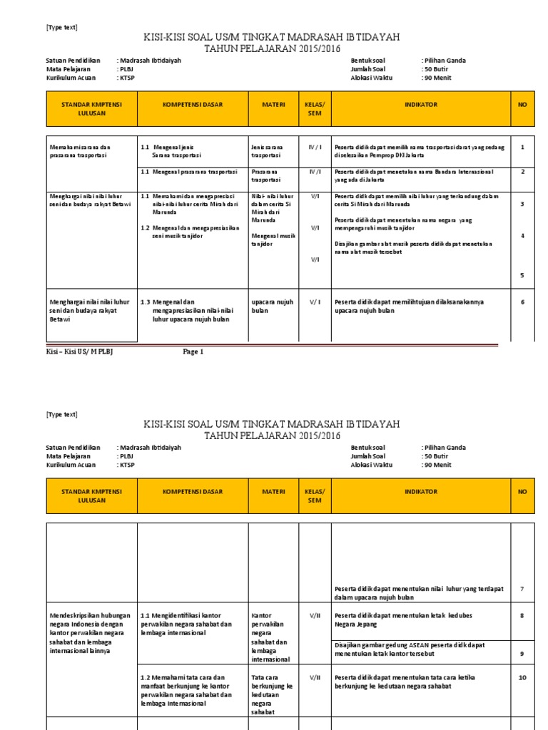 Kisi Kisi Soal Usm Tingkat Madrasah Ibtidayah Tahun