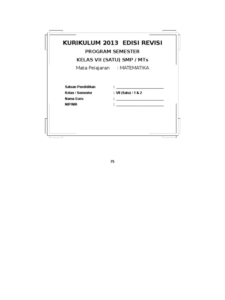 Informasi terlengkap tentang Program Semester Matematika Kelas 7 Kurikulum 2013.