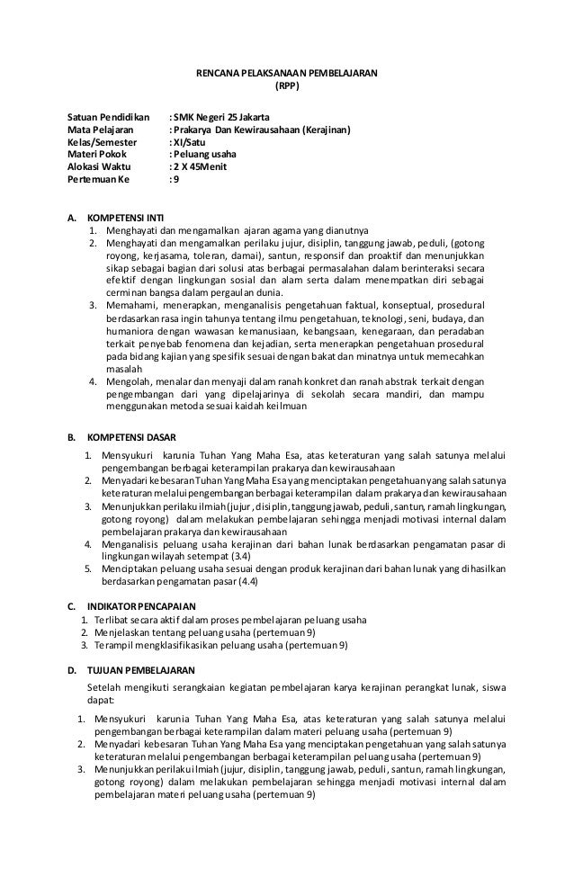 Lengkap dengan data-data Rpp Prakarya Kerajinan Kelas 9 Kurikulum 2013.