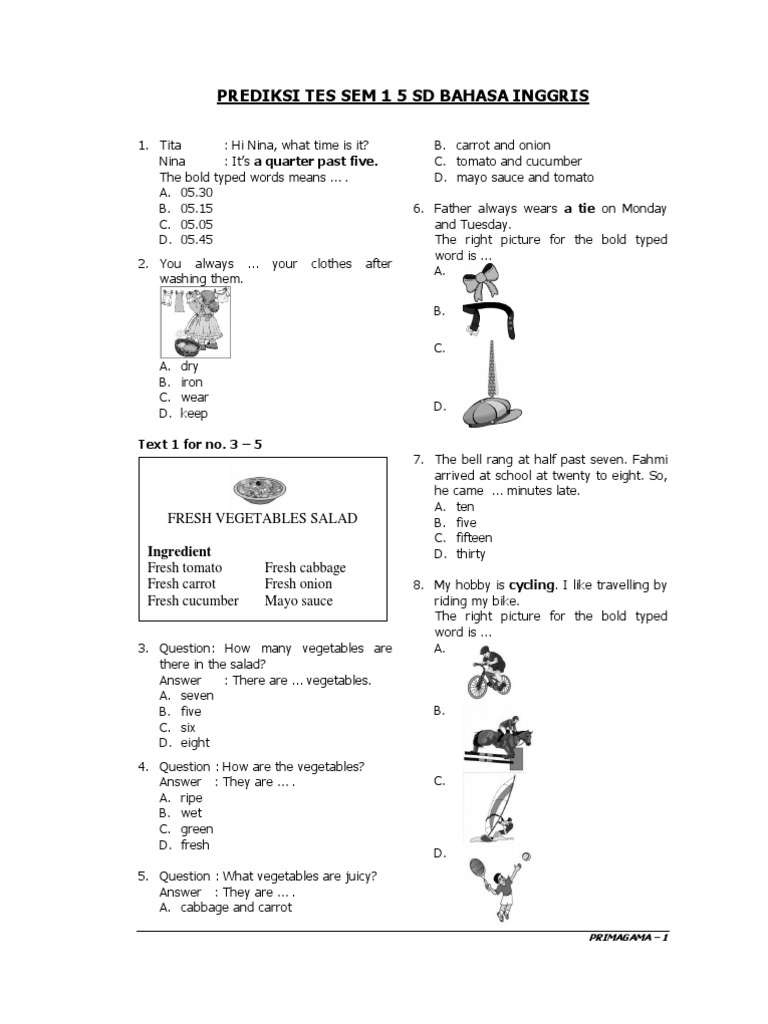 Contoh Soal Uas Bahasa Inggris Sd Kelas 2 Semester 1 Lengkap