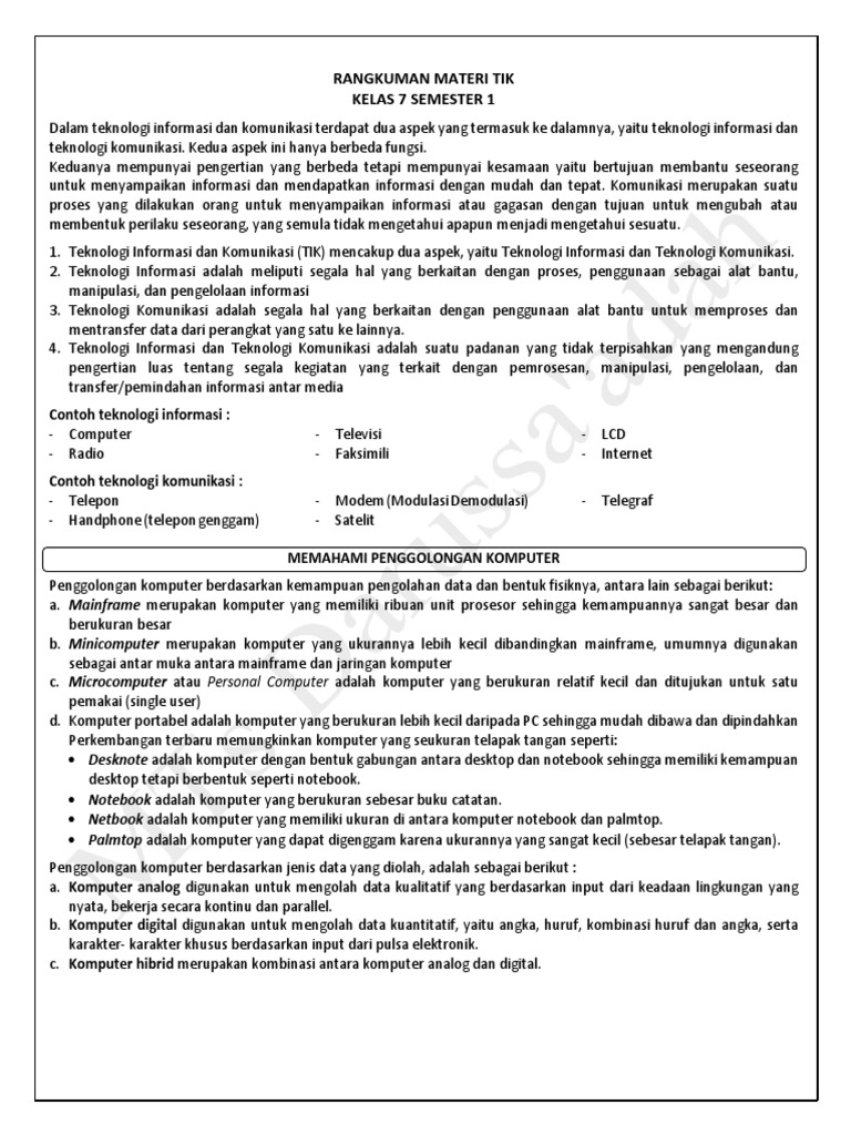 Pdf Rangkuman Materi Tik Kelas Xi Sem 1 Rafi Fajri