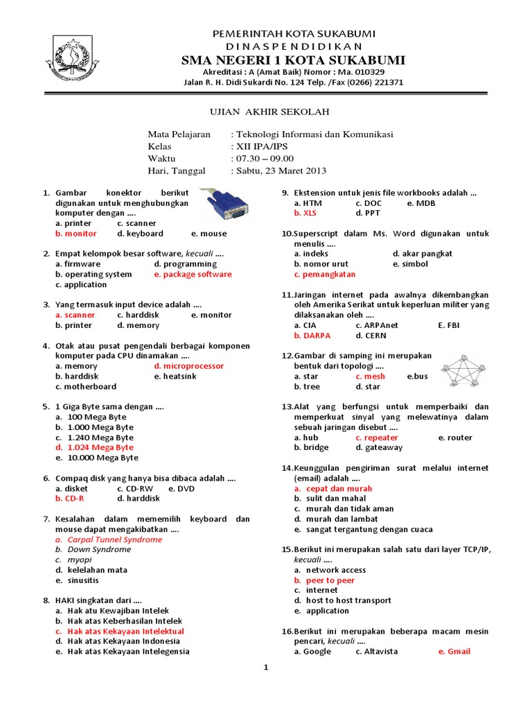 Jawaban Uas Ganjil Tik Kelas Xi Ipaips Tahun Pelajaran 2011
